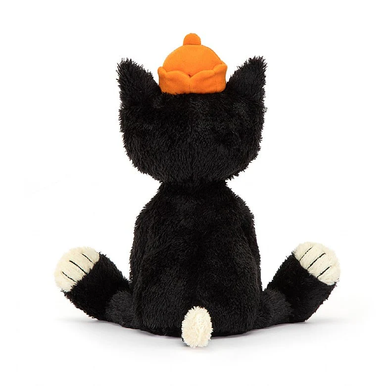 Jellycat Jack is finally here! This tuxedo cat has soft tufty fur, huge stitched paws and a friendly smile. With a long curved tail and L-shaped paws, Jellycat Jack has a soft velour crown of iconic orange jelly!